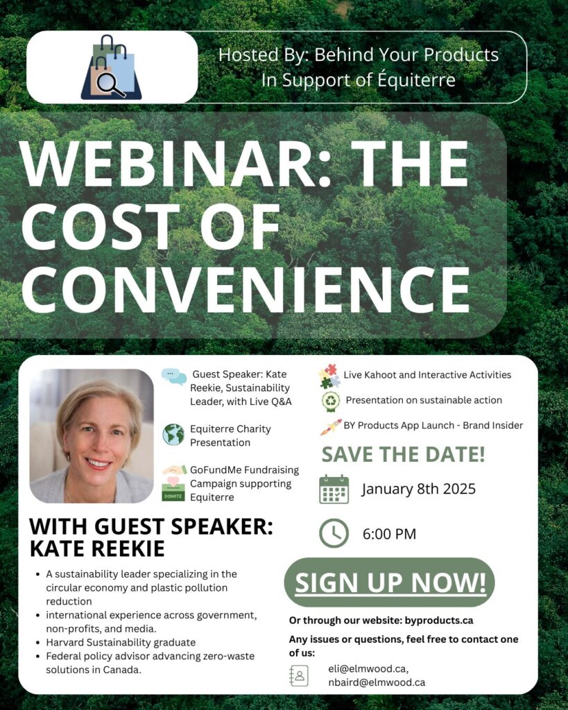 Our event will focus on empowering people to consider their purchases carefully, develop an understanding of the environmental impacts of products and act with groups of like-minded individuals! We will be discussing overconsumption and we are excited to announce that our guest speaker will be sustainability expert Kate Reekie! We will also have a presentation on Quebec charity Équiterre and will be launching our new sustainable consumerism webpage, Brand Insider. Thank you so much to everyone who is making this event possible!